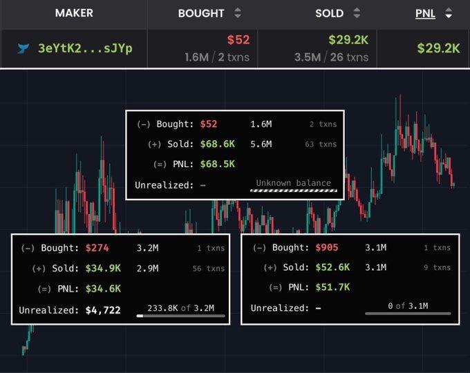 • Controleer of ze nog steeds andere tokens verhandelen en wat hun winst-/verliespercentages zijn