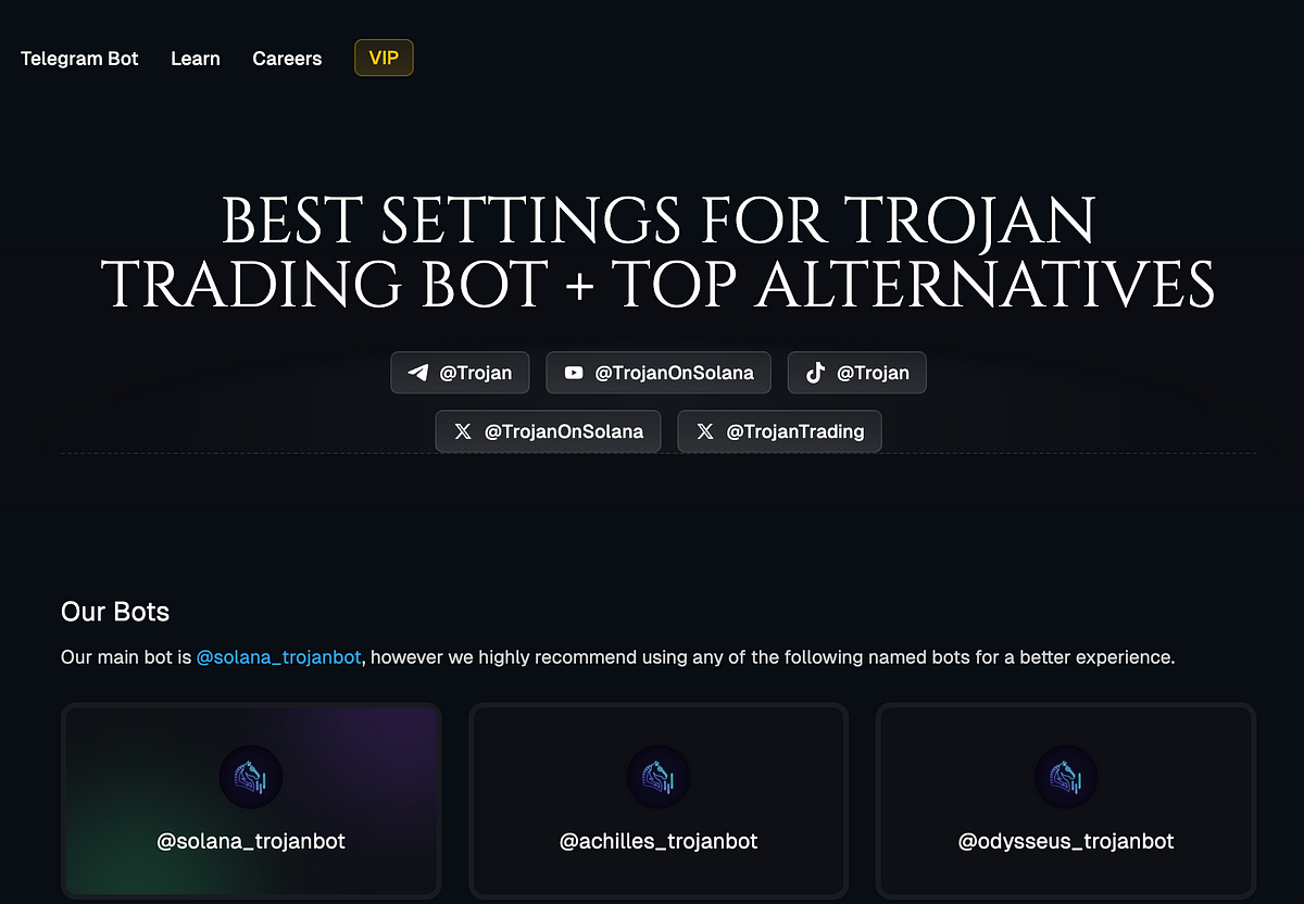 In de dynamische wereld van cryptocurrency -handel, vooral op platforms zoals Solana, kan het selecteren van de juiste handelsbot een aanzienlijk verschil maken. Hier is een overzicht van de beste alternatieven voor de Trojan -handelsbot, gebaseerd op inzichten van professionele handelaren: